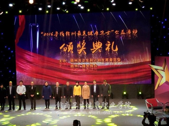 1月13日晚,由赣州市卫计委、赣州广播电视台联合举办的2016寻找赣州“最美健康卫士”公益活动颁奖典礼在赣州广播电视台演播大厅隆重举行。我院(校)药学系主任谢癸亮获此殊荣,这也是赣州市“最美健康卫士”自评选以来首次有教师代表获奖。谢癸亮主任心系学生、兢兢业业的精神展现了我院(校)教师崇德敬业的优良风气。
