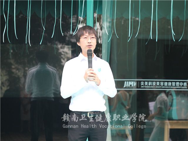 活力四射的开场舞后,院长何春明致辞。他对尖美小铺的开业表示祝贺,并表示,尖美小铺的开业正是我院深入推进校企合作、引企入校、产教融合的一大举措,将为本校美容专业学生提供实训基地、创新创业平台,也将为本院教师成为技能大师提供更高的平台。
