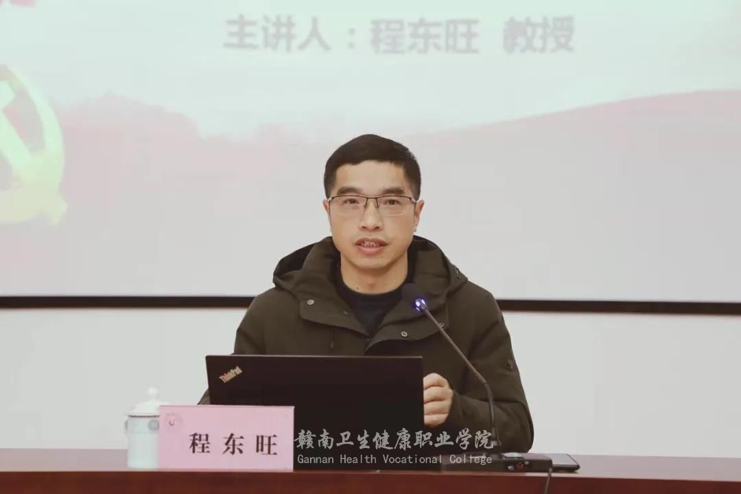 签约仪式后进行了共建单位集体备课会,赣南师范大学马克思主义学院教授、江西省高校思政课名师工作室——“程东旺工作室”负责人程东旺开展《学习十九届六中全会精神融入思政课教学》的讲座,潭东中学思政教师谢宛枫进行了无生模拟课堂展示,赣南卫职院思政教师陈晓丽进行了微课展示。
