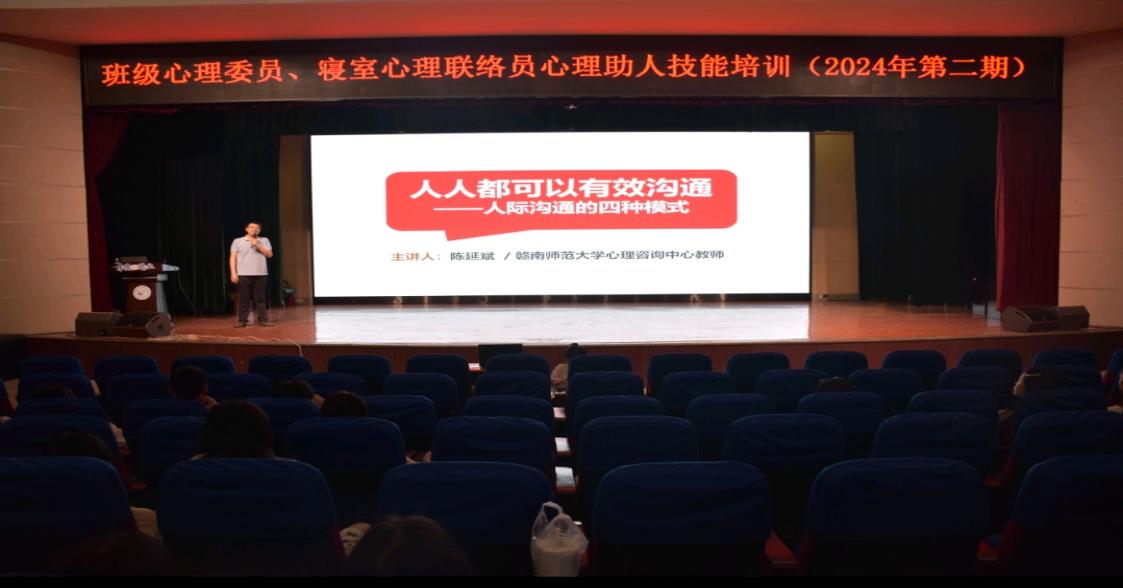 为加强班级心理委员、寝室心理联络员队伍建设,充分发挥心理委员、心理联络员在心理健康教育工作中的纽带作用,提高学院、学生系、班级、寝室四级预警网络运行效率,维护学生心理健康,我院特邀请赣南师范大学心理咨询中心教室陈延斌老师于2024年4月28日晚在学术报告厅开展《人人都可以有效沟通》心理助人技能培训讲座。学院2023级班级心理委员和寝室心理联络员到场参加,其他学生在线上实时观看讲座。