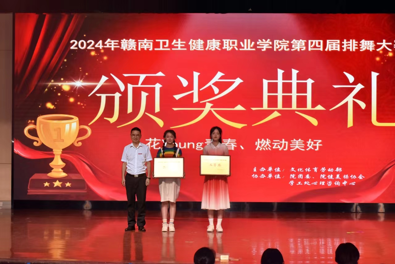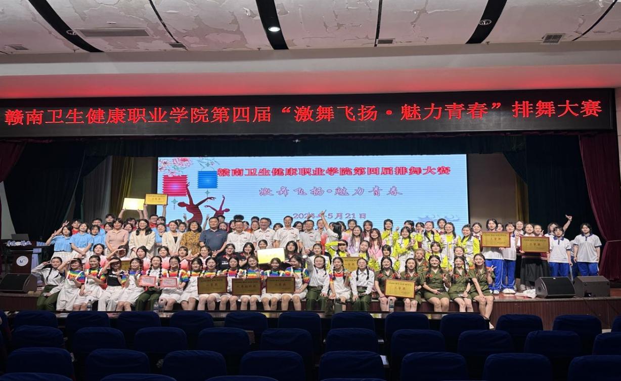 为大力促进我院阳光体育运动的蓬勃开展,丰盈校园文化生活,推动学生德、智、体、美、劳的全面成长,达成以赛促教、以赛促学之愿景,我院于 5 月 21 日下午,在图书馆多功能厅盛大举行了第四届“激舞飞扬·魅力青春”排舞大赛。学院党委书记杨明福,党委委员、副院长梁海洋,文化体育劳动部、医学技术系、康养系等负责同志皆亲临现场进行观摩指导,并为获奖团队颁奖。