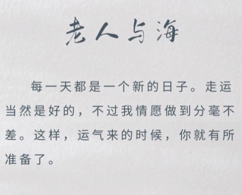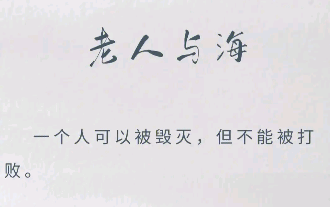“一个人可以被毁灭,但不能被打败。” 这句振聋发聩的话语,正是出自海明威的不朽经典《老人与海》。它引领了一个时代,我相信这句话在许多读者生命中敲响了响亮的鼓钟,在许多困境中这句话也许就是我们生命之中抓住希望的稻草。