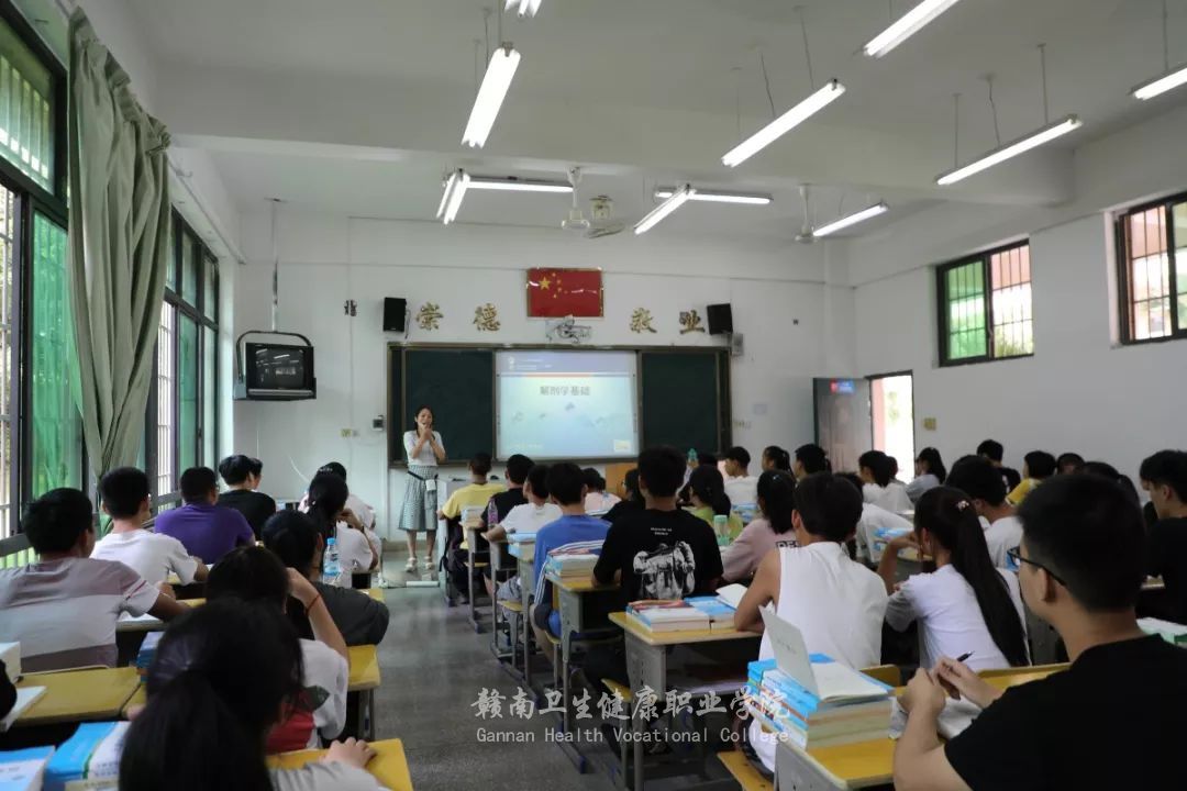 这两节课,医学基础部教研室主任张冬华老师要为新生讲授《解剖学基础》。两位院长和在场同学一样认真地听着课,时不时在笔记本上记录着,丝毫没有影响班上的同学。课上,教师张冬华从课程性质到课程结构,融合职业素养教育娓娓道来,介绍了国内外解剖学历史和发展趋势,引导同学们从“看”的角度学习解剖学、从“解”的角度认知解剖学。精彩的解剖学入门课,为初次接触解剖学的医学新生们打开了一扇新的大门。课后,何春明院长和同学们亲切互动,为他们迈向医学的第一步建立了充分的信心。何春明院长、刘国珍副院长对张冬华老师的授课给予了充分的肯定,并就医学基础课与专业课进一步有机融合提出了建设性意见。