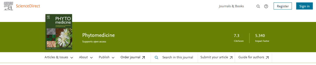 PHYTOmedicine(ISSN:0944-7113)出版国家是Netherlands荷兰,成立于1994年,主要是以治疗为导向的杂志。旨在关注和促进这一特定领域的研究,并为植物医学的药理研究、临床疗效证明和安全性制定国际公认的科学标准。植物医学的主要目的是将植物修复纳入常规/官方医学。2021年影响因子(IF)为5.340,中科院SCI期刊分区1区。